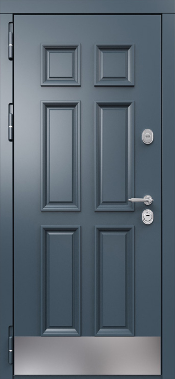 Дверь стальная МДФ эмаль №563 — это удачное сочетание надежной металлической основы и аккуратной декоративной отделки. Каркас из профильной трубы и стальной лист толщиной 2 мм обеспечивают прочность и устойчивость к взлому, а ребра жесткости повышают общий ресурс эксплуатации. Важной особенностью модели является наличие терморазрыва в коробке и полотне: конструкция эффективно препятствует промерзанию зимой, исключает появление конденсата и сохраняет тепло в помещении. Панели МДФ с ПВХ-покрытием, использованные с обеих сторон, защищены от влаги и мелких механических повреждений, благодаря чему дверь долго сохраняет привлекательный внешний вид. Два контура резинового уплотнителя дополнительно усиливают защиту от сквозняков и уличного шума. Такая дверь органично подходит для частных домов, квартир и офисов, сочетая в себе надежность стали и практичность современной отделки. Дверь стальная МДФ эмаль №563 от производителя: быстрое изготовление и монтаж в Рузе, индивидуальные размеры, широкий выбор материалов и фурнитуры, официальная гарантия до 10 лет.