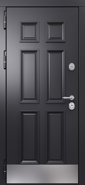 Входная дверь с МДФ №566 создана для тех, кто ценит прочность металла и уютный внешний вид в одном решении. Она одинаково хорошо вписывается в частный дом, квартиру или офис, подчеркивая солидность пространства и обеспечивая надежную защиту. Каркас и полотно собраны из профильных труб, усиленных ребрами жесткости, а стальной лист толщиной 2 мм гарантирует устойчивость к взлому и длительный срок службы. С обеих сторон дверь облицована МДФ панелями с ПВХ-покрытием, что делает поверхность более устойчивой к истиранию и мелким повреждениям, сохраняя привлекательность даже при интенсивной эксплуатации. Панели легко очищаются и не выгорают на солнце, благодаря чему дверь подходит и для уличной установки. Два контура уплотнения надежно защищают от сквозняков и посторонних запахов, а при необходимости можно дополнительно усилить конструкцию тепло- и шумоизоляцией. Модель №566 сочетает в себе сдержанный дизайн и функциональность, делая ее практичным выбором для самых разных помещений. Входная дверь с МДФ №566 от производителя: быстрое изготовление и монтаж в Рузе, индивидуальные размеры, широкий выбор материалов и фурнитуры, официальная гарантия до 10 лет.