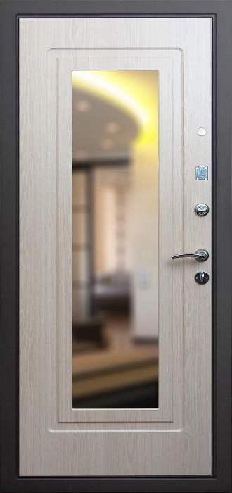 Эта модель создана для тех, кто ценит не только прочность, но и практичность в повседневном использовании. Стальной каркас из профильной трубы и лист металла толщиной 2 мм с рёбрами жёсткости формируют надёжную основу, способную выдерживать серьёзные нагрузки. Снаружи дверь защищена порошковым покрытием, которое устойчиво к влаге, солнцу и механическим повреждениям, а изнутри отделана МДФ-накладкой, придающей интерьеру уют и аккуратность. В центре конструкции внимание привлекает зеркало — удобная деталь, которая избавляет от необходимости в дополнительном настенном аксессуаре и одновременно делает пространство визуально просторнее. Именно здесь название модели — металлическая дверь с зеркалом в дом №2 — обретает своё значение, сочетая функциональность с эстетикой. Для повышения безопасности предусмотрены два замка российского производства с независимыми системами запирания, а также блокираторы. Два контура уплотнителя защищают от сквозняков и пыли, а возможность выбрать направление открывания делает установку универсальной. Металлическая дверь с зеркалом в дом №2 от производителя: быстрое изготовление и монтаж в Рузе, индивидуальные размеры, широкий выбор материалов и фурнитуры, официальная гарантия до 10 лет.