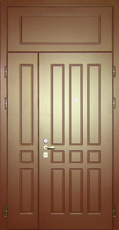 Полуторная входная дверь с верхней фрамугой №2 — это оптимальное решение для тех, кто ищет функциональность и эстетичность в одном продукте. Она отличается стильной отделкой из МДФ, которая устойчива к механическим повреждениям и сохраняет свой внешний вид на долгие годы. Конструкция двери включает прочный каркас из профильной трубы 50х25 мм и металл толщиной 2 мм, что обеспечивает высокую надежность. Наличие верхней фрамуги придает двери визуальную легкость и позволяет пропускать больше света, создавая уют в прихожей. Замки от надежных производителей, таких как Просам и Мосрентген, с тремя ригелями гарантируют высокий уровень безопасности. Для дополнительной кастомизации можно добавить стеклопакет, зеркало или кованые элементы, а также установить видеодомофон для контроля доступа. Полуторная входная дверь с верхней фрамугой №2 от производителя: быстрое изготовление и монтаж в Рузе, индивидуальные размеры, широкий выбор материалов и фурнитуры, официальная гарантия до 10 лет.