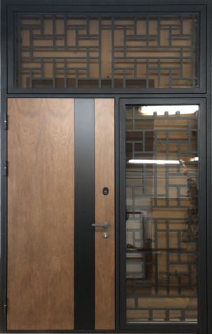 Входная дверь с остекленной фрамугой №1 привлекает внимание благодаря стильному и современному дизайну. Ее внешняя и внутренняя отделка из МДФ выглядит элегантно и долговечно, а также устойчива к механическим повреждениям, таким как царапины и вмятины. Каркас из профильной трубы и металл толщиной 2 мм гарантируют прочность и надежность. Наличие фрамуги позволяет создать эффектное освещение и визуально расширяет пространство, при этом сохранение теплоизоляции обеспечено двумя контурами резинового уплотнителя. Блокираторы и качественные замки, такие как Просам и Мосрентген, надежно защищают от взлома. Возможность дополнить дверь стеклопакетом, зеркалом или коваными элементами делает эту модель еще более универсальной для различных интерьеров. Входная дверь с остекленной фрамугой №1 от производителя: быстрое изготовление и монтаж в Рузе, индивидуальные размеры, широкий выбор материалов и фурнитуры, официальная гарантия до 10 лет.