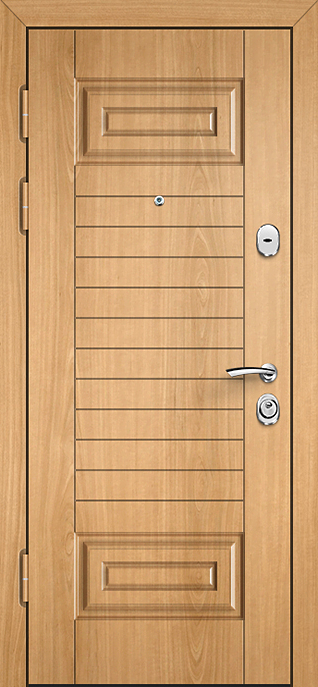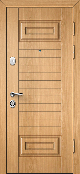 Металлическая конструкция с листом стали толщиной 2 мм и жёстким каркасом из профильной трубы формирует основу, которая не подведёт ни в квартире, ни в офисе. Два контура резинового уплотнителя делают закрывание плотным, уменьшая шум и сквозняки, а наличие блокираторов повышает уровень безопасности. Внешняя и внутренняя отделка выполнена из МДФ ПВХ — материал прочный, устойчивый к мелким повреждениям и сохраняющий аккуратный вид при ежедневной эксплуатации. В центре внимания здесь Железная дверь в квартиру №78, сочетающая надёжность стали и декоративные возможности панелей, которые можно комбинировать по вкусу. Комплект замков представлен сувальдным Просам и цилиндровым Мосрентген, при этом доступна замена на более сложные механизмы вплоть до биометрических систем. Конструкцию легко дополнить зеркалом, стеклопакетом, коваными элементами или видеодомофоном, превратив строгую дверь в удобный и технологичный элемент современного жилья. Железная дверь в квартиру №78 от производителя: быстрое изготовление и монтаж в Рузе, индивидуальные размеры, широкий выбор материалов и фурнитуры, официальная гарантия до 10 лет.
