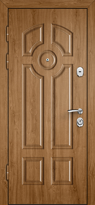 Филёнчатая отделка всегда придаёт дверному полотну особый шарм, создавая эффект глубины и аккуратного рельефа. Входная дверь МДФ с внешней панелью под филёнку №537 универсальна и одинаково хорошо смотрится на фасаде частного дома, в офисе или в квартире. Отделка из МДФ-плиты устойчива к мелким повреждениям, не выгорает и сохраняет аккуратный вид при ежедневной эксплуатации, а при необходимости легко комбинируется с другими декоративными элементами. В основе конструкции — каркас из профильной трубы, лист стали толщиной 2 мм и рёбра жёсткости, обеспечивающие надёжность и жёсткость всей системы. Для удобства и безопасности предусмотрены два замка: сувальдный Просам и цилиндровый Мосрентген. Два контура уплотнения повышают комфорт эксплуатации, а при желании дверь можно дополнить зеркалом, стеклопакетом или коваными вставками, сделав её не только прочной, но и выразительной частью интерьера. Входная дверь МДФ и внешней панелью под филенку №537 от производителя: быстрое изготовление и монтаж в Рузе, индивидуальные размеры, широкий выбор материалов и фурнитуры, официальная гарантия до 10 лет.