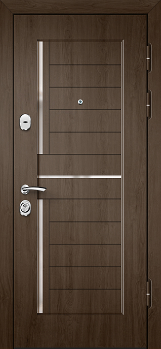 Глубокий оттенок венге всегда выглядит благородно и современно, а декоративная панель придаёт полотну завершённый стильный образ. Дверь МДФ цвета венге с внешней декоративной панелью №538 подходит для установки как в частных домах, так и в квартирах или офисах, где ценят сочетание надёжности и эстетики. Плиты МДФ отличаются прочностью, стойкостью к мелким механическим повреждениям и долго сохраняют первоначальный вид без потери насыщенности цвета. Конструкция выполнена на основе стального каркаса с листом металла толщиной 2 мм и рёбрами жёсткости, что обеспечивает высокий уровень прочности. Два контура уплотнения повышают комфорт эксплуатации, защищая от сквозняков. Дополнительно дверь можно оснастить шумо- и теплоизоляцией, зеркалом, стеклопакетом или коваными элементами, сделав её не только практичной, но и индивидуальной деталью интерьера. Дверь МДФ цвета венге с внешней декоративной панелью №538 от производителя: быстрое изготовление и монтаж в Рузе, индивидуальные размеры, широкий выбор материалов и фурнитуры, официальная гарантия до 10 лет.