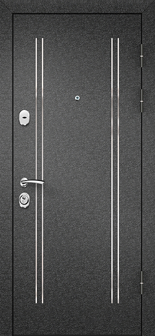 Дверь металлическая в порошке №59 — надежное решение для квартир, офисов и подъездов, где требуется прочная конструкция и аккуратный внешний вид. Снаружи используется молотковое напыление, которое не боится механических повреждений и долго сохраняет насыщенный цвет, а внутренняя поверхность отделана ламинатом, создающим ощущение уюта и подчеркивающим практичность модели. Каркас собран из профильной трубы 50х25 мм, усилен ребрами жесткости и листом стали толщиной 2 мм, что придает двери устойчивость к силовым нагрузкам. Дополнительную защиту обеспечивают два замка: верхний сувальдный «Просам» и нижний цилиндровый «Мосрентген», оба с тремя ригелями. Два контура резинового уплотнения помогают справляться со сквозняками, а при желании дверь можно укомплектовать шумо- и теплоизоляцией. Модель №59 легко адаптируется под любые требования: возможна комбинация отделок, установка зеркала, стеклопакета или декоративной ковки. Дверь металлическая в порошке №59 от производителя: быстрое изготовление и монтаж в Рузе, индивидуальные размеры, широкий выбор материалов и фурнитуры, официальная гарантия до 10 лет.