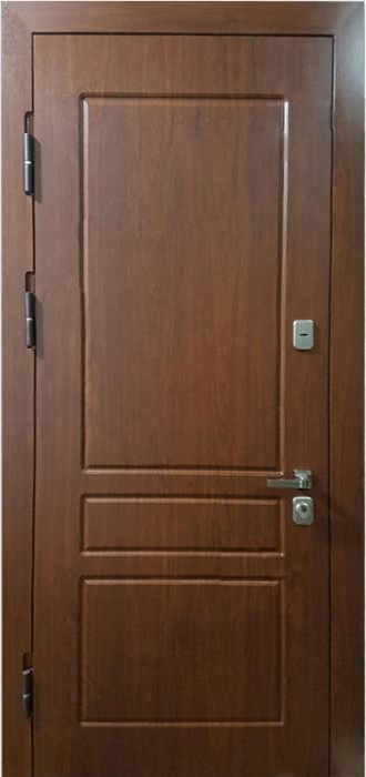 Дверь входная уличная с терморазрывом №41 – это надежная и стильная модель, идеально подходящая для частных домов и коттеджей. Конструкция двери с терморазрывом в коробке и полотне эффективно защищает от холодного воздуха и влаги, обеспечивая стабильный микроклимат внутри помещения. Внешняя и внутренняя отделка из панелей МДФ с ПВХ покрытием не только привлекает внимание своим современным дизайном, но и обеспечивает отличную стойкость к механическим повреждениям, а также долговечность. Металлическое полотно толщиной 1,5 мм с ребрами жесткости из профильных труб гарантирует высокую прочность, а также надежную защиту от взлома. Шумо- и теплоизоляция из пенопласта повышенной плотности создают дополнительный комфорт. Дверь оснащена высококачественными замками Kale Kilit с тремя ригелями, что обеспечивает высокий уровень безопасности. Дверь входная уличная с терморазрывом №41 от производителя: быстрое изготовление и монтаж в Рузе, индивидуальные размеры, широкий выбор материалов и фурнитуры, официальная гарантия до 10 лет.
