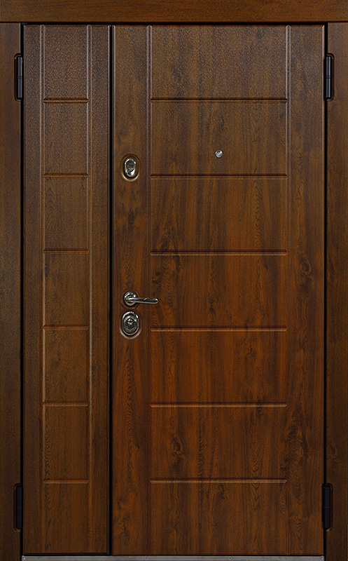 Эта двухстворчатая входная дверь с отделкой под темный орех №11 идеально сочетается с классическими и современными интерьерами. Накладки из МДФ, как снаружи, так и внутри, обеспечивают долговечность и устойчивость к механическим повреждениям, сохраняя привлекательный вид в течение долгого времени. Покрытие в цвете темного ореха придает двери элегантность и стиль, а также защищает от внешних воздействий. Двухстворчатая входная дверь с отделкой под темный орех №11 от производителя: быстрое изготовление и монтаж в Рузе, индивидуальные размеры, широкий выбор материалов и фурнитуры, официальная гарантия до 10 лет.