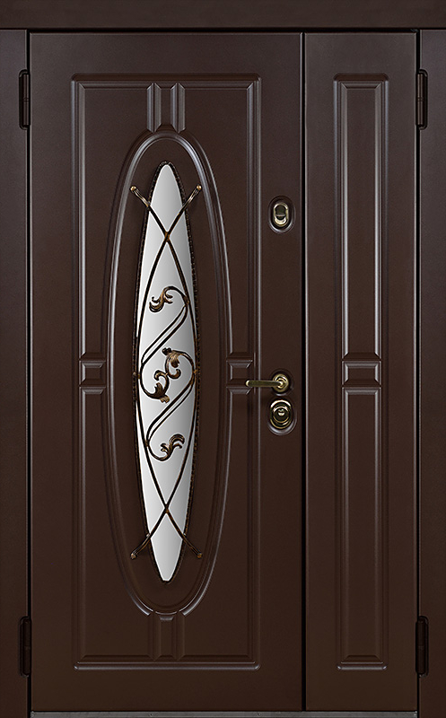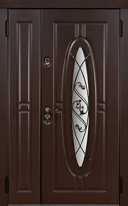 Двойная уличная дверь с овальным стеклом и художественной ковкой №14 — это уникальное сочетание функциональности и эстетики. Панели МДФ с ПВХ-покрытием, используемые как для внешней, так и для внутренней отделки, обладают высокой стойкостью к внешним воздействиям, сохраняя свой внешний вид на долгие годы. Внешний декор в виде художественной ковки придаёт двери особый шарм, подчеркивая её стиль и индивидуальность. Двойная уличная дверь с овальным стеклом и художественной ковкой №14 от производителя: быстрое изготовление и монтаж в Рузе, индивидуальные размеры, широкий выбор материалов и фурнитуры, официальная гарантия до 10 лет.