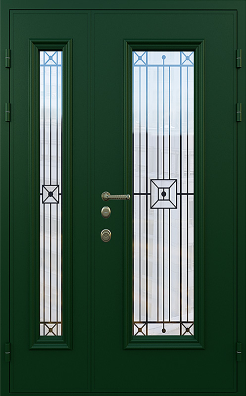 Зеленая полуторная дверь со стеклопакетом для частного дома №18 — это идеальный выбор для тех, кто хочет добавить в свой дом надежность и стиль. Элементы декора, такие как багет и ковка, придают двери элегантный вид, который идеально гармонирует с фасадом загородного дома. Панели МДФ с ПВХ-покрытием, использованные для внешней и внутренней отделки, обеспечивают высокую стойкость к механическим повреждениям и внешним воздействиям, сохраняя прекрасный внешний вид на долгое время. Зеленая полуторная дверь со стеклопакетом для частного дома №18 от производителя: быстрое изготовление и монтаж в Рузе, индивидуальные размеры, широкий выбор материалов и фурнитуры, официальная гарантия до 10 лет.