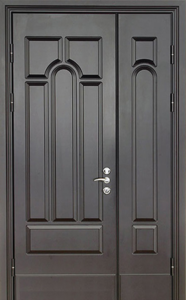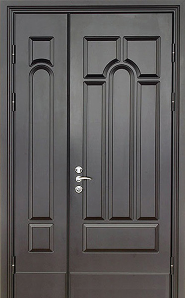 Металлическая двухстворчатая дверь для дома цвета графит №27 – это стильное и надежное решение для вашего жилья. Внешняя и внутренняя отделка выполнены из МДФ, что придает двери изысканный вид и увеличивает её стойкость к механическим повреждениям. Цвет графит придаёт двери современный и элегантный оттенок, который легко впишется в интерьер как частных домов, так и современных офисов. Металлическая двухстворчатая дверь для дома цвета графит №27 от производителя: быстрое изготовление и монтаж в Рузе, индивидуальные размеры, широкий выбор материалов и фурнитуры, официальная гарантия до 10 лет.