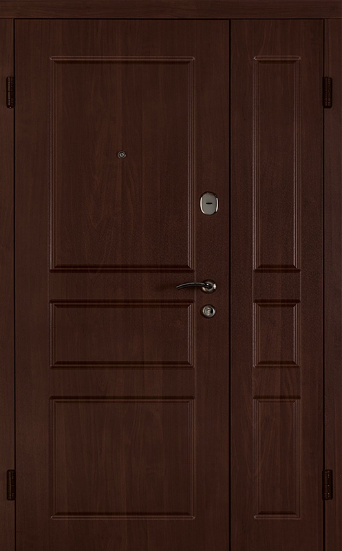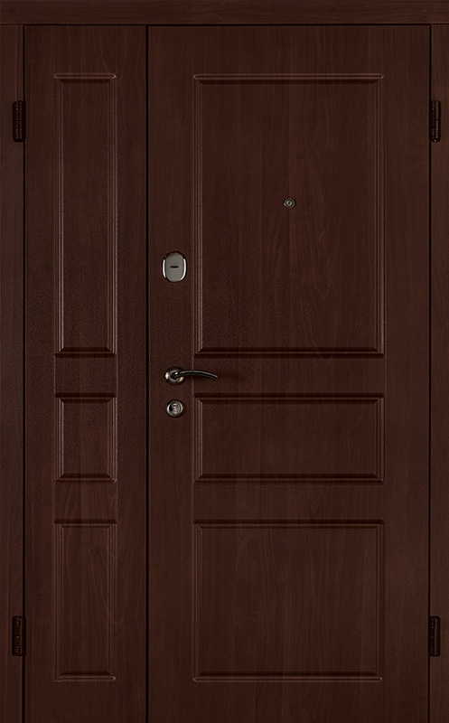 Коричневая входная полуторная дверь с филенчатой створкой №4 – это надежное и стильное решение для вашего дома или офиса. Внешняя и внутренняя отделка из МДФ с ПВХ обеспечивает долговечность и устойчивость к повреждениям, сохраняя при этом элегантный внешний вид. Прочные материалы конструкции, такие как профильная труба 50х25 мм и лист металла толщиной 2 мм, гарантируют стабильность и безопасность. Ребра жесткости из профильных труб 40х25 мм усиливают дверное полотно, а уплотнение с двумя контурами надежно защищает от внешних факторов. Несмотря на отсутствие терморазрыва, в двери реализованы терморазрывы в коробке и полотне, что помогает улучшить теплоизоляцию. Возможность выбора дополнительных опций, таких как шумоизоляция, делает эту дверь универсальной для различных условий эксплуатации. Коричневая входная полуторная дверь с филенчатой створкой №4 от производителя: быстрое изготовление и монтаж в Рузе, индивидуальные размеры, широкий выбор материалов и фурнитуры, официальная гарантия до 10 лет.