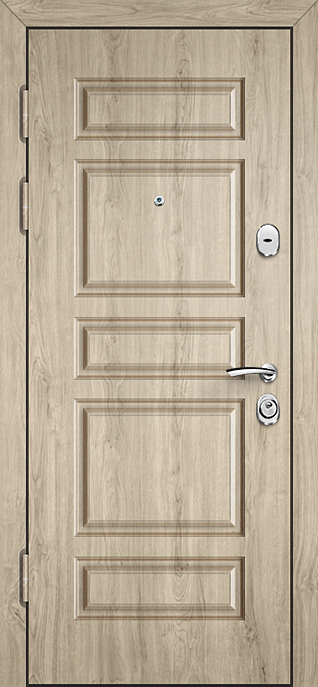 Входная дверь с ручками и замками высокого класса защиты №36 станет надежным выбором для вашего частного дома, квартиры или офиса. Конструкция из профильной трубы 50х25 мм и листа металла толщиной 2 мм обеспечивает высокую прочность и стойкость к внешним воздействиям. Ребра жесткости из труб 40х25 мм усиливают конструкцию, делая дверь устойчивой к деформации. Внешняя отделка с порошковой окраской не только придает дверям элегантный вид, но и обеспечивает стойкость к механическим повреждениям и атмосферным воздействиям. Внутренняя отделка из плиты МДФ дарит тепло и уют. Резиновый уплотнитель с двумя контурами гарантирует отличную герметичность. Для дополнительной безопасности предусмотрены блокираторы и замки высокого класса защиты. Благодаря терморазрыву в коробке и полотне, дверь эффективно защищает от перепадов температуры, обеспечивая комфорт в помещении. Входная дверь с ручками и замками высокого класса защиты №36 от производителя: быстрое изготовление и монтаж в Рузе, индивидуальные размеры, широкий выбор материалов и фурнитуры, официальная гарантия до 10 лет.