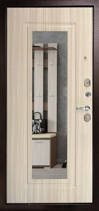 Недорогая офисная металлическая дверь №7 идеально подходит для использования в офисах, частных домах и квартирах. Ее конструкция с профильной трубой 50х25 мм и металлическим листом толщиной 2 мм гарантирует прочность и долговечность. Внешняя и внутренняя отделка из накладки МДФ придает двери элегантный и современный вид, а также повышает ее износостойкость. Зеркало, установленное в двери, добавляет стильный элемент декора, который будет выгодно смотреться в любом помещении. Два контура уплотнения обеспечат защиту от шума и холода. Несмотря на отсутствие терморазрыва, терморазрыв в коробке и полотне эффективно поддерживает стабильную температуру внутри помещения. Замки российского производства — сувальдный Просам и цилиндровый Мосрентген — обеспечивают надежную защиту и безопасное использование. Недорогая офисная металлическая дверь №7 от производителя: быстрое изготовление и монтаж в Рузе, индивидуальные размеры, широкий выбор материалов и фурнитуры, официальная гарантия до 10 лет.