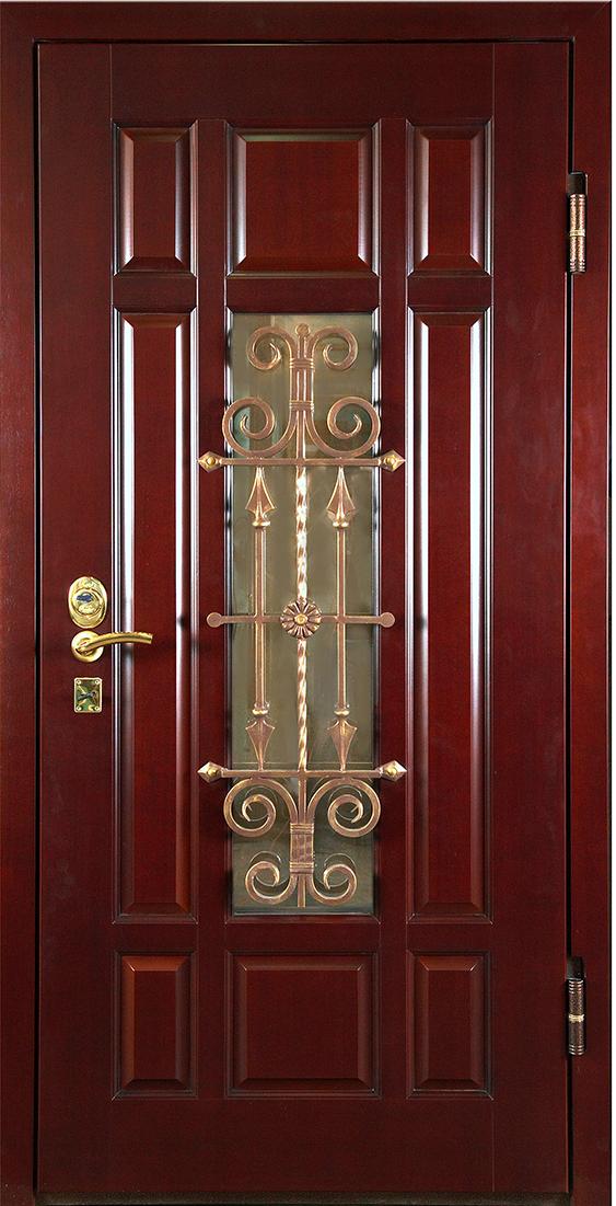 Красивая шпонированная дверь с надежной фурнитурой и ковкой "лоза" №33