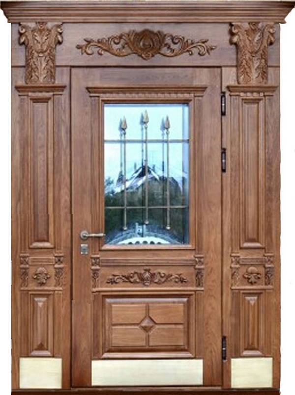 Натуральный дуб в отделке придаёт конструкции основательность и ощущение уюта, а стальной каркас с листом металла толщиной 2 мм и системой ребер жёсткости обеспечивает надежную защиту от взлома. Входная дверь с окном в частный дом №59 удачно сочетает массивность и лёгкость: встроенное окно пропускает дневной свет и делает прихожую более просторной, сохраняя при этом высокий уровень безопасности. Для защиты от сквозняков предусмотрены два контура уплотнения, а терморазрыв в коробке и полотне предотвращает промерзание в холодный сезон. Итальянские замки Cisa цилиндрового и сувальдного типа дополняют надежность, гарантируя спокойствие владельцев. Возможность выбрать направление открывания, добавить зеркало, кованые элементы или умный электронный замок позволяет адаптировать модель под любые предпочтения, сохраняя её презентабельный облик и долговечность. Входная дверь с окном в частный дом №31 от производителя: быстрое изготовление и монтаж в Рузе, индивидуальные размеры, широкий выбор материалов и фурнитуры, официальная гарантия до 10 лет.