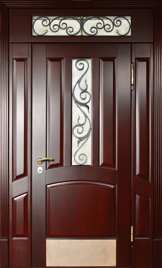 Красивая шпонированная дверь с надежной фурнитурой и ковкой "лоза" №33 идеально дополнит интерьер вашего частного дома или коттеджа. Внешняя и внутренняя отделка выполнены из натурального дерева, что придает двери элегантность и стиль. Профильная труба 50х25 мм используется для каркаса и полотна, а лист металла толщиной 2 мм и ребра жесткости из профильных труб 40х25 мм обеспечивают прочность и долговечность. Несмотря на отсутствие терморазрыва, дверь гарантирует надежную защиту и теплоизоляцию благодаря двум контурам уплотнения. Элементы ковки "лоза" придают двери особое очарование, сочетая практичность с эстетикой. Эта дверь — идеальный выбор для тех, кто ценит стиль, качество и безопасность. Красивая шпонированная дверь с надежной фурнитурой и ковкой "лоза" №33 от производителя: быстрое изготовление и монтаж в Рузе, индивидуальные размеры, широкий выбор материалов и фурнитуры, официальная гарантия до 10 лет.