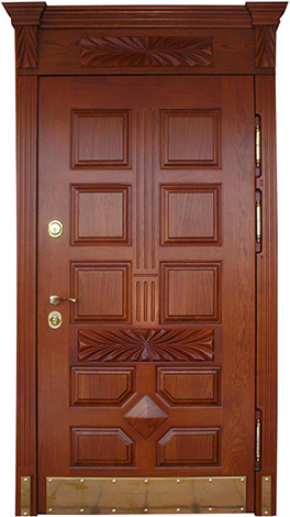 Эксклюзивная высокая входная дверь с железным отбойником №36 — это образец элегантности и функциональности, который идеально впишется в любой частный дом или коттедж. Изготовленная из массива дерева, она будет долго сохранять свой привлекательный внешний вид и устойчивость к внешним воздействиям. Прочная конструкция из профильных труб и листа металла толщиной 2 мм, усиленная ребрами жесткости, гарантирует надежность и долговечность. Терморазрыв в коробке и полотне помогает минимизировать теплопотери и защищает от перепадов температуры. Дверь оснащена высококачественными замками, что обеспечивает высокий уровень безопасности. Железный отбойник добавляет двери не только дополнительную защиту, но и стильный элемент дизайна. Эксклюзивная высокая входная дверь с железным отбойником №36 от производителя: быстрое изготовление и монтаж в Рузе, индивидуальные размеры, широкий выбор материалов и фурнитуры, официальная гарантия до 10 лет.