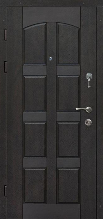Входная дверь для дома уличная №18 разработана для установки в условиях, где от двери требуется максимум прочности и устойчивости к погодным испытаниям. Молотковое напыление на внешней стороне не только придает фактурный декоративный эффект, но и защищает поверхность от влаги, ударов и мелких повреждений, сохраняя привлекательный вид долгие годы. Внутри дверь отделана панелями МДФ с ПВХ-покрытием, которые отличаются стойкостью к царапинам и удобством в уходе, а также гармонично вписываются в любой интерьер прихожей. Каркас и полотно выполнены из профильных труб, усиленных стальным листом толщиной 2 мм и дополнительными ребрами жесткости, что делает конструкцию надежной и долговечной. Два контура резинового уплотнителя эффективно защищают от сквозняков и уличной пыли. Особое внимание заслуживает наличие терморазрыва в коробке и полотне: эта технология предотвращает промерзание и образование конденсата, обеспечивая сохранение тепла даже в сильные морозы. Входная дверь для дома уличная №18 от производителя: быстрое изготовление и монтаж в Рузе, индивидуальные размеры, широкий выбор материалов и фурнитуры, официальная гарантия до 10 лет.